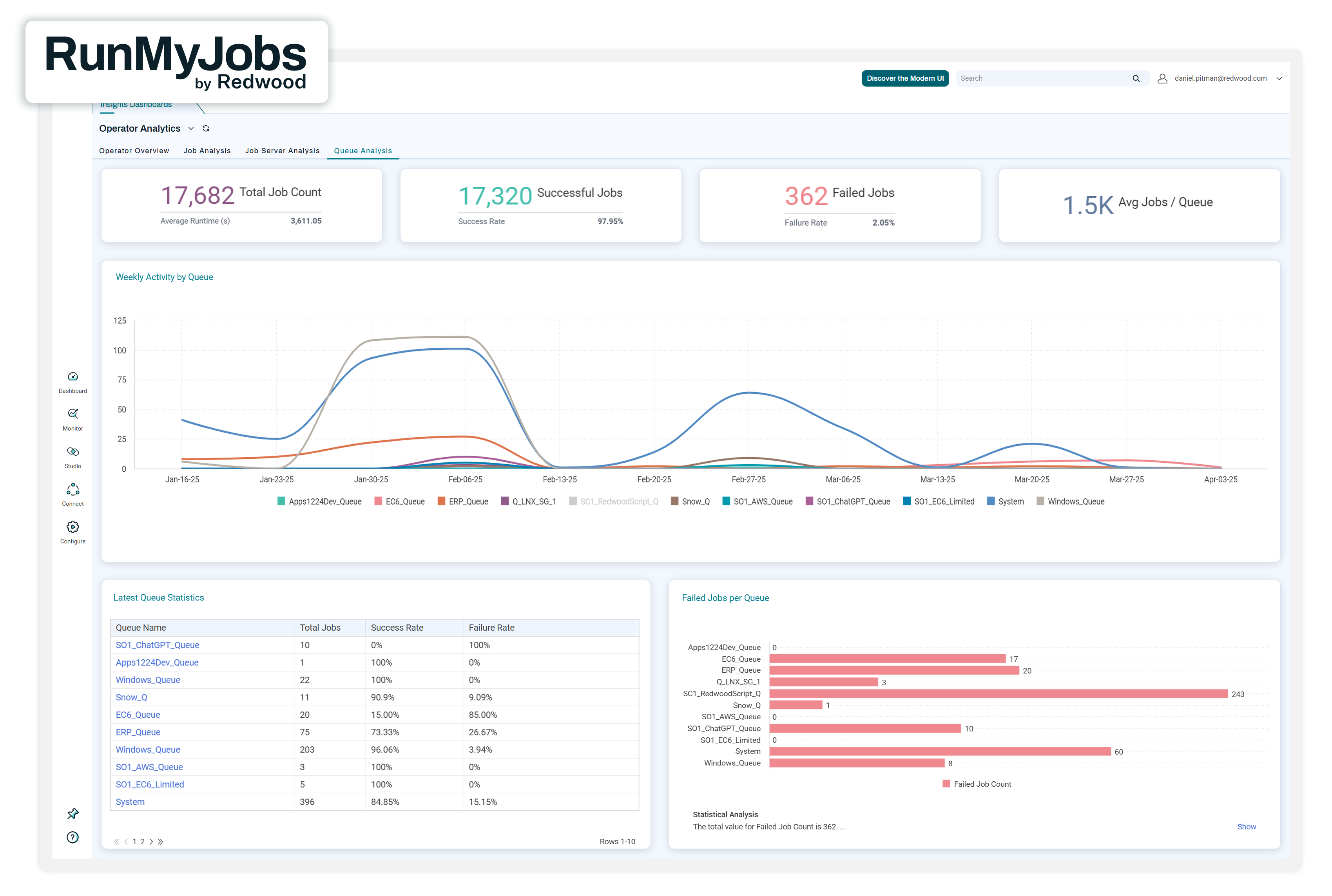 Redwood Insights transforms how businesses monitor, analyze and act on critical workflows by delivering workflow analytics, AI-powered narratives and real-time operational intelligence. The result is total visibility and orchestration precision, allowing teams to anticipate bottlenecks before they occur and optimize performance for critical business processes across complex IT and business environments.